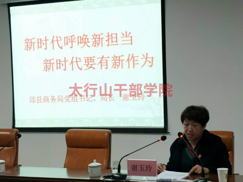峰峰礦區經貿工委原書記杜良盛、邱縣商務局局長謝玉玲作分別作了事跡報告《展現新擔當,實現新作為》和《新時代呼喚新擔當,新時代要有新作為》。